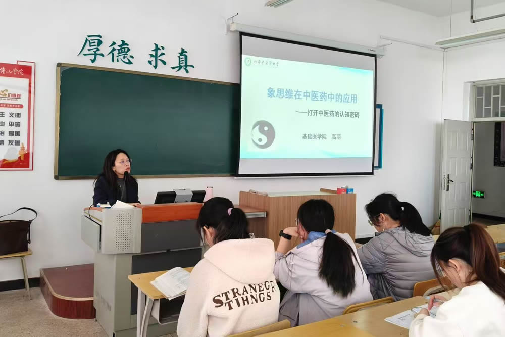 3月31日下午,十大买球官方网站在图文信息中心910教室开展“傅山讲堂”系列学术讲座第七十三期。买球赛十大平台基础医学院副教授高丽作了题为《象思维在中医药中的应用》的讲座。学院2024级学生参加。