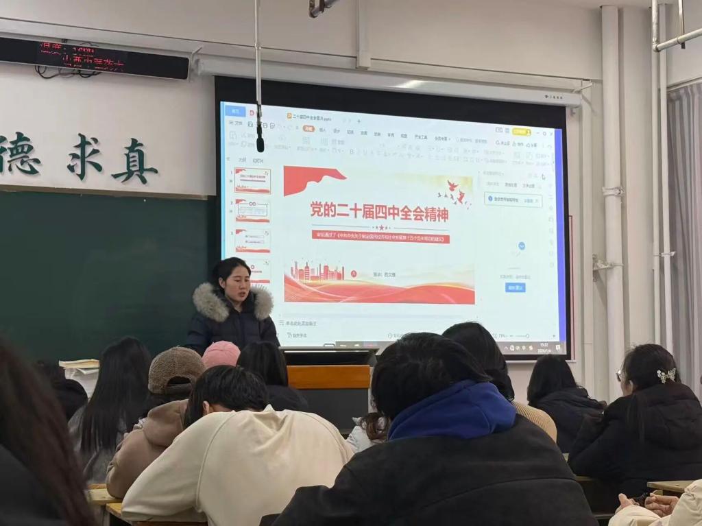 为深入学习宣传贯彻党的二十届四中全会精神,引导青年学生准确把握全会核心要义与实践要求,切实把思想和行动统一到党中央决策部署上来,12月30日至1月5日,学院辅导员吕文雁、曹冉、张磊于图文信息中心教室开展党的二十届四中全会精神全覆盖宣讲活动,推动理论学习入脑入心、见行见效。