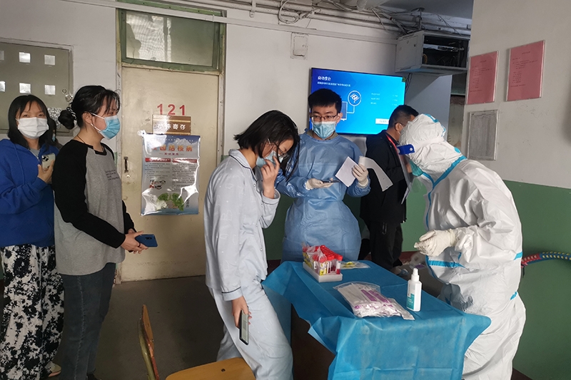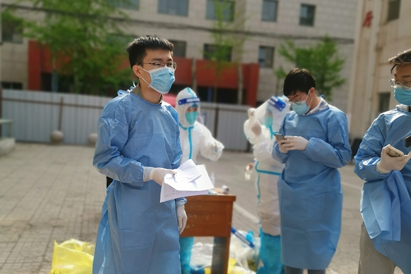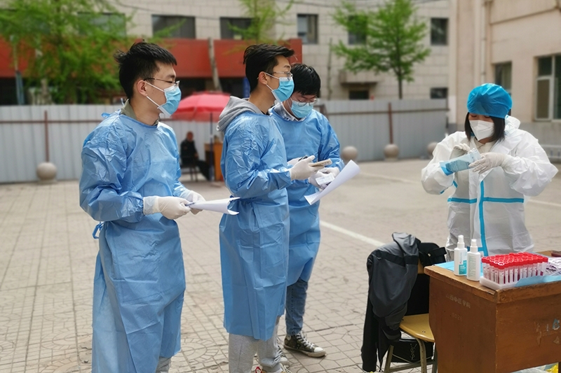 十大买球官方网站党小组积极响应太原校区临时党支部“戴党徽,亮身份,争做抗疫先锋”活动的号召,4月13日上午,十大买球官方网站党小组派出三名党员作为太原校区师生核酸检测志愿者。在四个小时维持秩序、引导保持间距、核酸信息采集扫码等志愿活动中,三名党员志愿者圆满完成了太原校区核酸采集工作。