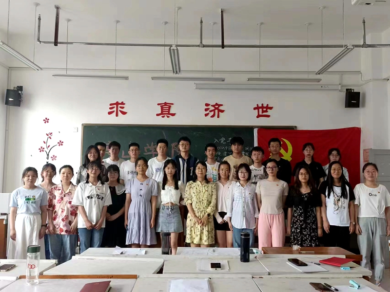 支部大会通过了兰沛东等8名同志转正的申请。通过了邵韫玮等11名发展对象发展成为预备党员的申请。支部书记李娟为新发展的预备党员依次发了党徽。最后全体党员进行了庄严的入党誓词宣誓。