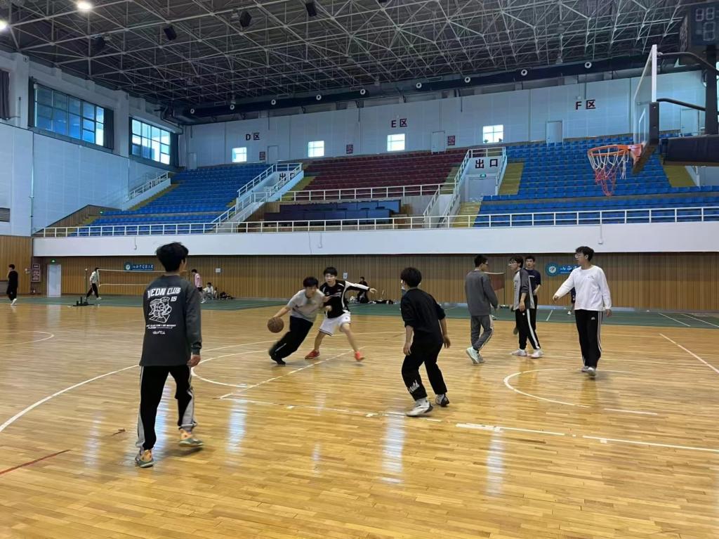 活动形式丰富多元,设置了定点投篮和3v3篮球对抗赛两个项目。定点投篮环节,同学们屏气敛息,专注地调整呼吸,稳稳瞄准篮筐。一个个篮球在空中划出优美的弧线,精准落入篮筐,充分展现出同学们扎实的篮球基本功和专注认真的态度。